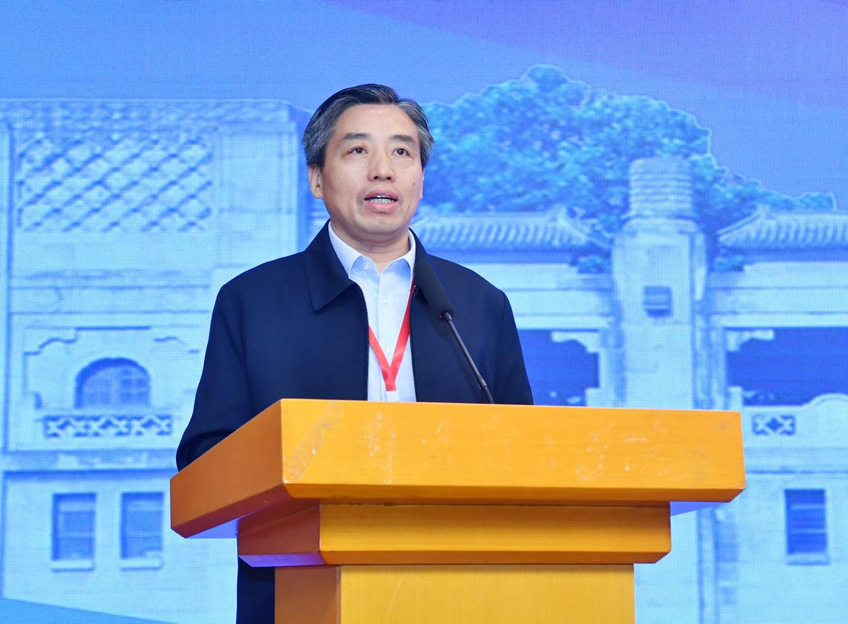 刘红明在开幕式上致欢迎辞。他介绍了南京体育学院在人才培养、教学科研、办学模式等方面取得的显著成效,指出本次论坛是深入贯彻党的二十届三中全会精神的具体实践,是在加快推进教育强国与体育强国战略时代背景下举行的重要学术活动。他强调,竞技体育改革与体育人才培养是体育强国建设的关键支撑,我校作为江苏省内唯一独立建制的高等体育院校,肩负着为党育人、为国育才的双重使命,此次论坛通过探讨改革完善竞技体育管理体制与运行机制的新思路,探索深化体教融合赋能体育人才培养模式改革的新举措,能够为加快推进体育强国和教育强国建设提供理论启迪。