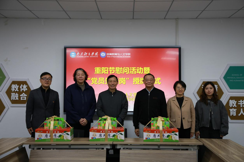 金秋送爽,丹桂飘香。在重阳佳节来临之际,为弘扬中华民族尊老敬老的优良传统,学习传承党员先锋模范作用,10月24日,体育教育与人文学院举行了重阳节慰问活动暨“党员示范岗”授牌仪式。学院“五老”代表、原校党委常委、副校长王正伦,院特邀党建组织员、原体育系主任王爱丰,退休老教师庄萍华参加活动。学院党总支书记卢奎,组织员谢明慧,学工办副主任、分团委副书记沈梦,“党员示范岗”青年教师党员代表出席活动。