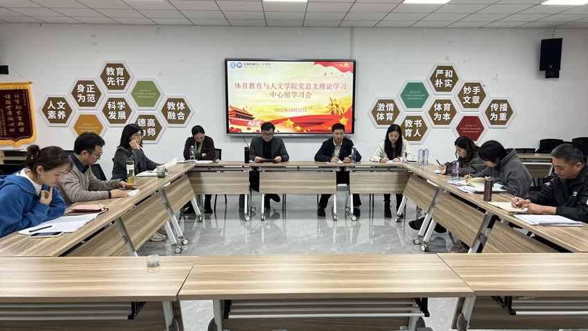 10月21日,体育教育与人文学院党总支理论学习中心组举行专题学习会,深入学习《习近平新时代中国特色社会主义思想课程体系和教学大纲》。会议由党总支书记卢奎主持,党总支理论学习中心组全体成员参加。