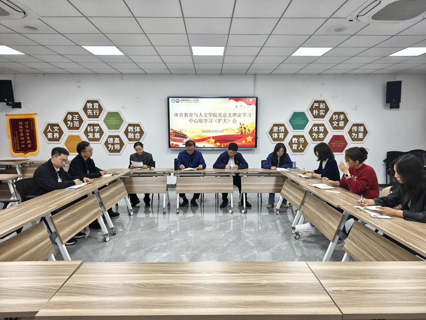 10月31日,体育教育与人文学院党总支召开理论学习中心组(扩大)会议暨学习贯彻党的二十届四中全会精神会议。会议由党总支书记卢奎主持,学院党总支理论学习中心组成员、全体行政人员参加会议。