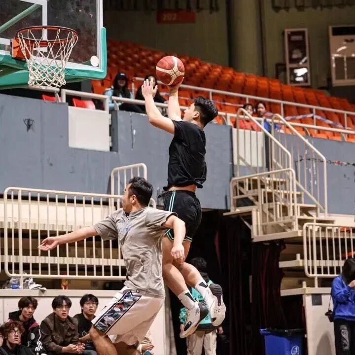 期间,精彩瞬间不断爆燃:郭昊文的超远三分应声入网,引来全场惊呼;刘奕杭和李斌卓则凭借灵活的脚步与精准的中投,与同学们展开精彩单挑,每一次攻防转换都充满看点;黄荣奇持球突破后的强力扣篮,将现场气氛推向高潮!