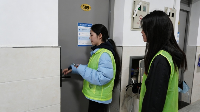 检查队伍分组进入各宿舍楼,对逐间宿舍开展细致排查。