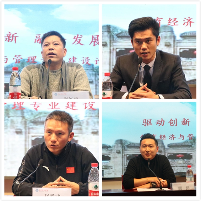 体育经济与管理(含社体)专业研讨会以“驱动创新·融合发展”为主题。体育教育专业毕业生、江苏尚品文化传媒有限公司董事长尚红宇做了“创新创业在高校——三大权威赛事介绍”主题演讲;社会体育专业毕业生、南京兰博文体育文化有限公司创始人相九州分享了自己创业实践经历;社会体育专业毕业生、江苏省体育人才流动服务站中心培训部部长赵爱武回顾了自己的大学生活,并介绍了目前工的作情况;体育产业管理专业毕业生、国家税务总局上海市静安区税务局主任科员顾超与同学们分享了毕业后职业方向的变化。